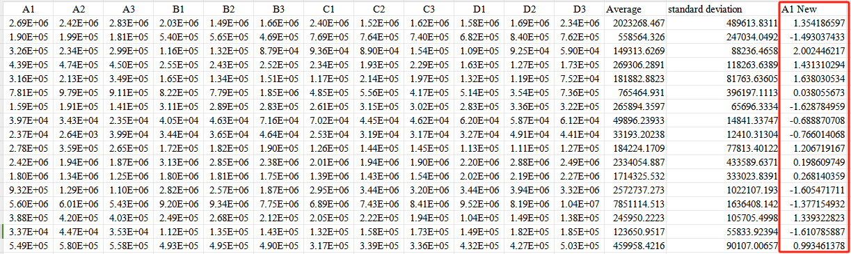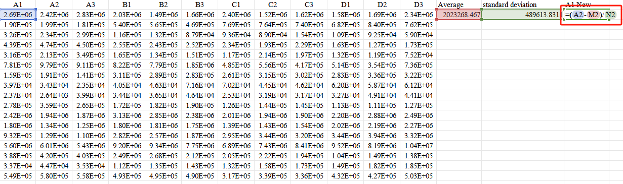 Third,Input the formula Xnew=(X−mean)/standard deviation