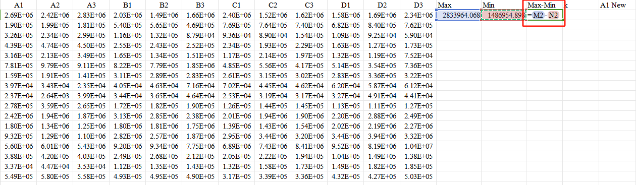 For example, to normalize data to the range [-3, 3] using Excel, the Excel formulas used are: Max, Min. The specific operation is as follows: